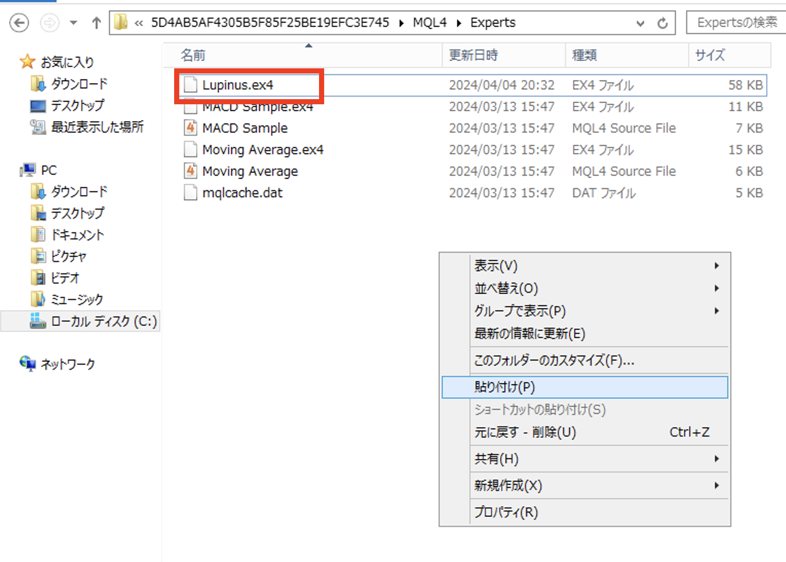 LINEでお渡しした、「Lupinus」のファイルをExpertsフォルダにコピペしてください。