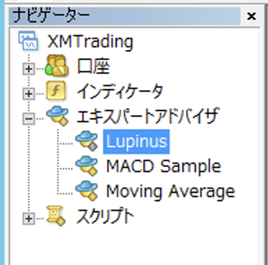 「エキスパートアドバイザ」の左にある「+」ボタンを押すと、Lupinusのファイルが表示されます。