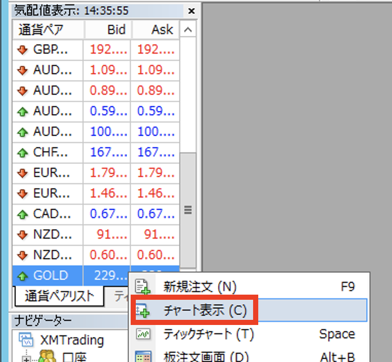 GODを探して、右クリック「チャートを表示」をクリックしてください。